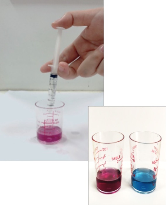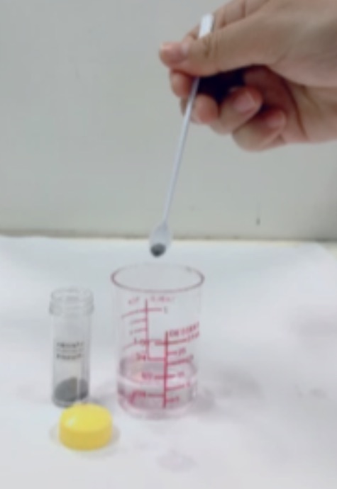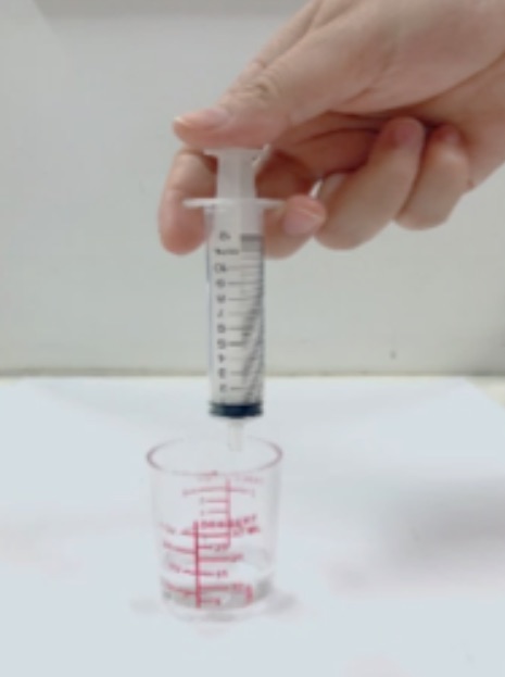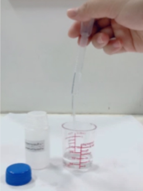 - ดูดตัวอย่างน้ำปริมาตร 10 มิลลิลิตรใส่ในถ้วยพลาสติก