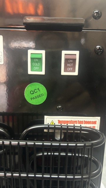 ผมตั้งใจจะทดสอบตู้น้ำรุ่นนี้ข้ามคืน เพื่อดูว่ามีรอยรั่วตรงไหนหรือไม่ พร้อมทั้งทดสอบอุณหภูมิน้ำร้อน น้ำเย็น เพื่อดูว่าปกติไหม โดยใช้เครื่องวัดอุณหภูมิจุ่มลงน้ำ และถ่ายรูปส่งกลับไปหา Mr.John ได้ดังนี้ครับ