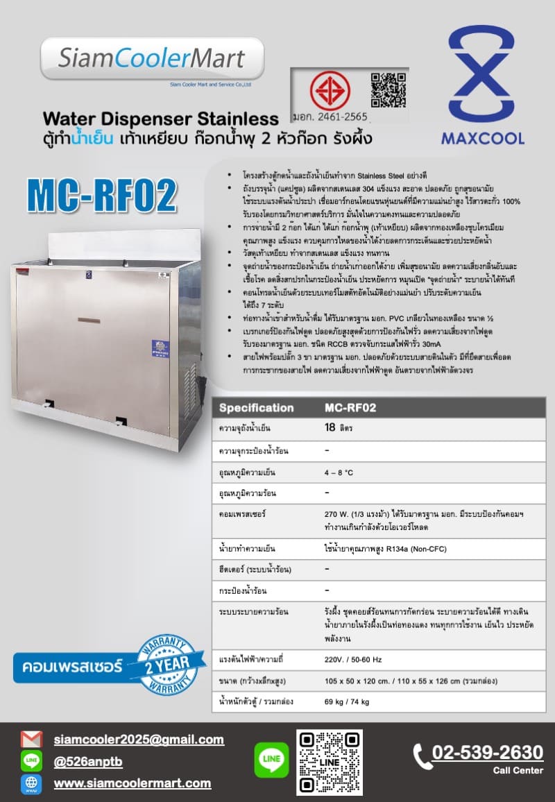 เอกสารรับรอง มอก. เลขที่ ท.9353-1/2461 ตู้ทำน้ำเย็น Maxcool