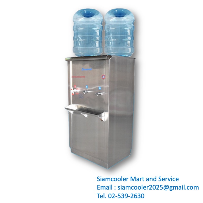 ตู้น้ำสแตนเลสเจาะรู 2 ช่อง สำหรับคว่ำถังน้ำ PET มีความเหนียว แข็งแรง ทนทาน ปลอดภัยต่อการใช้งาน รองรับถังน้ำดื่ม 18.9 ลิตร (เรียกทั่วไป 20 ลิตร) เหมาะกับออฟฟิศและพื้นที่ใช้งานทั่วไป