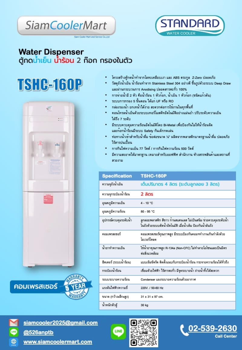 ตู้กดน้ำเย็น น้ำร้อน หัวก๊อก TSHC160-P กรองในตัว